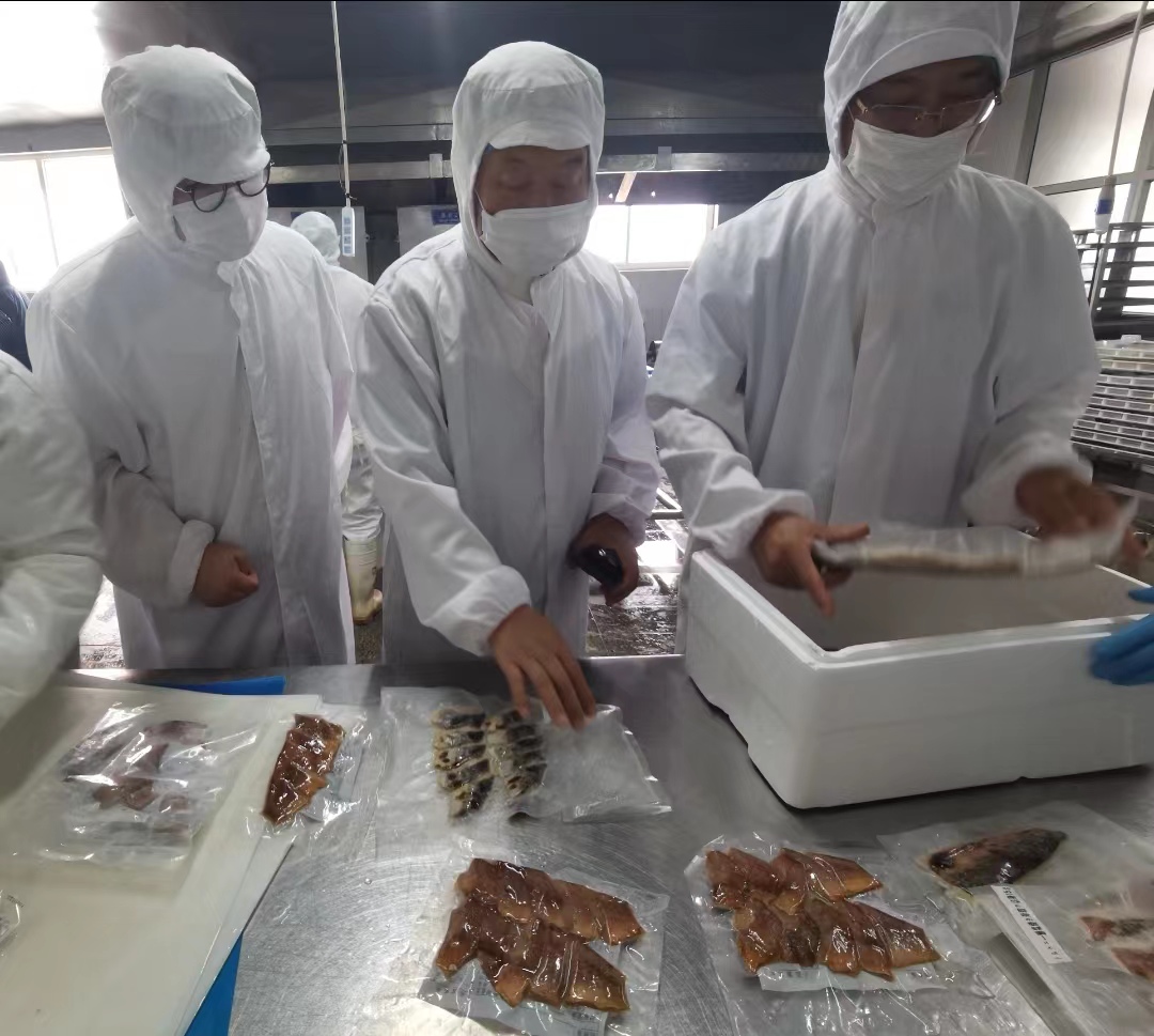 加工車間工人們緊張有序地工作,將可口的烤魚、優質的帝王蟹包裝、裝箱源源不斷發往世界各地,送到了消費者的餐桌上。金琳公司李柏省經理、宇祥公司于飛經理不斷到全國乃至世界各地參觀學習先進設備、技術與質量標準,緊隨時代發展,不斷調整產品方向,提高產品質量。