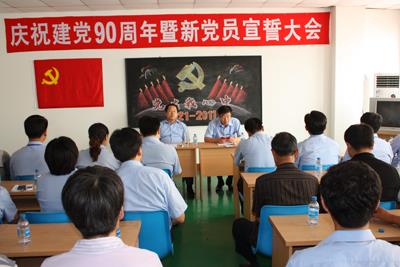 近日,集團公司在二樓會議室召開了慶祝建黨90周年總結大會。公司黨委書記、公司總經理苗總及各黨支部領導、各位新老黨員參加了會議。會議由黨委副書記隋樹武主持,苗總在會上作重要講話。