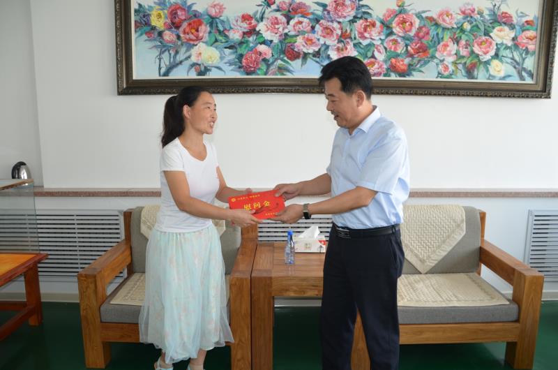 9月5日,環翠區區委副書記宋華東、環翠區總工會主席鄒杰來到宇王集團海洋生物科技產業園,走訪慰問了困難職工,表達黨和政府的關心和祝福,并為他們送去了助學金。宇王集團董事長苗強,工會主席隋樹武陪同慰問。